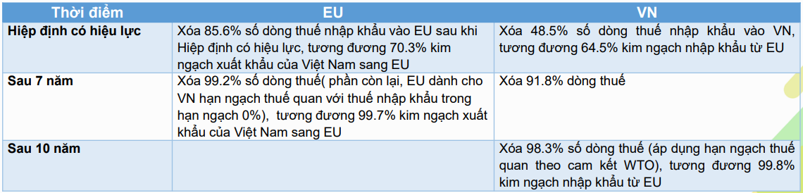 • Lộ trình cam kết giảm thuế 0% theo EVFTA: